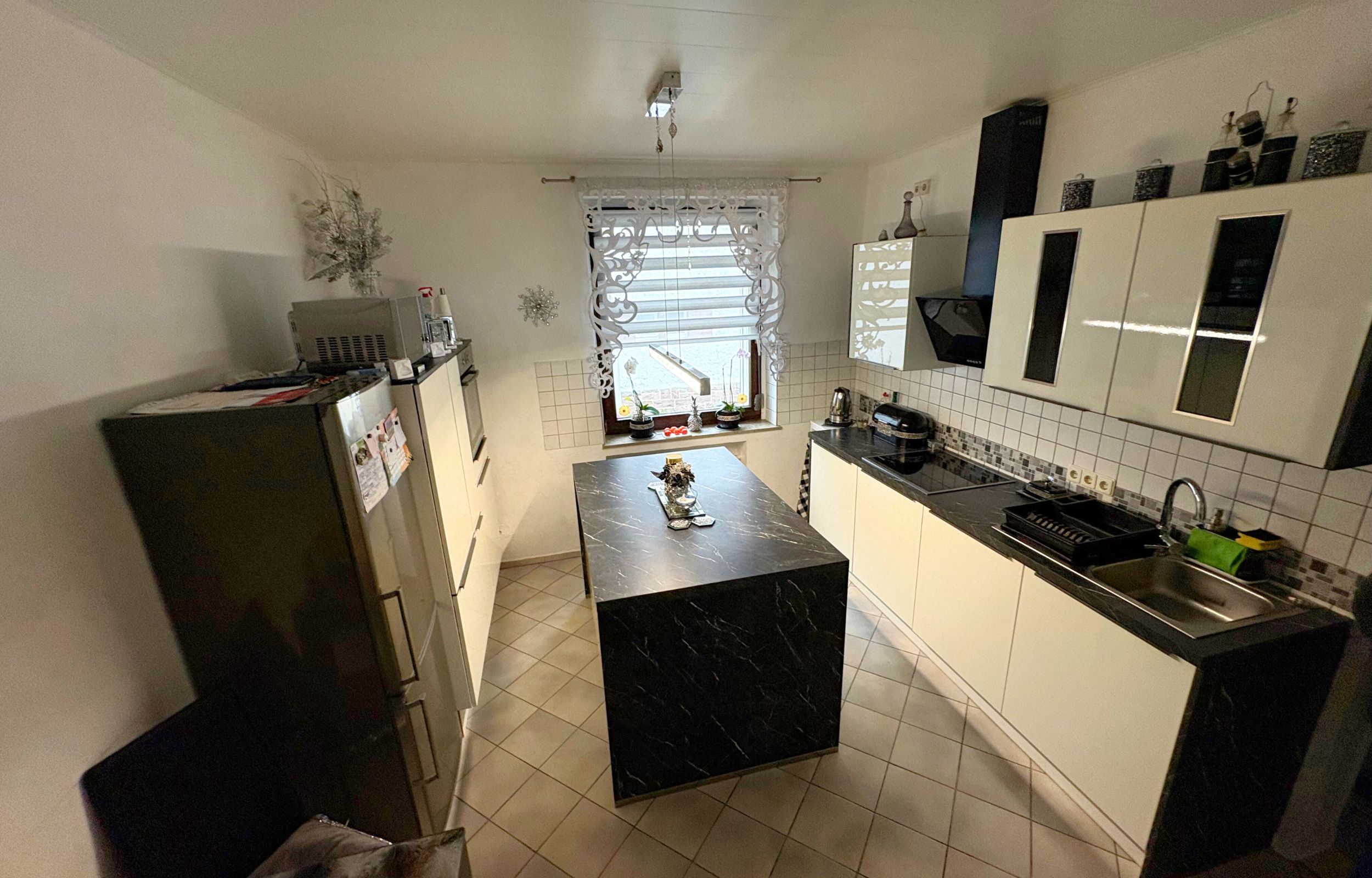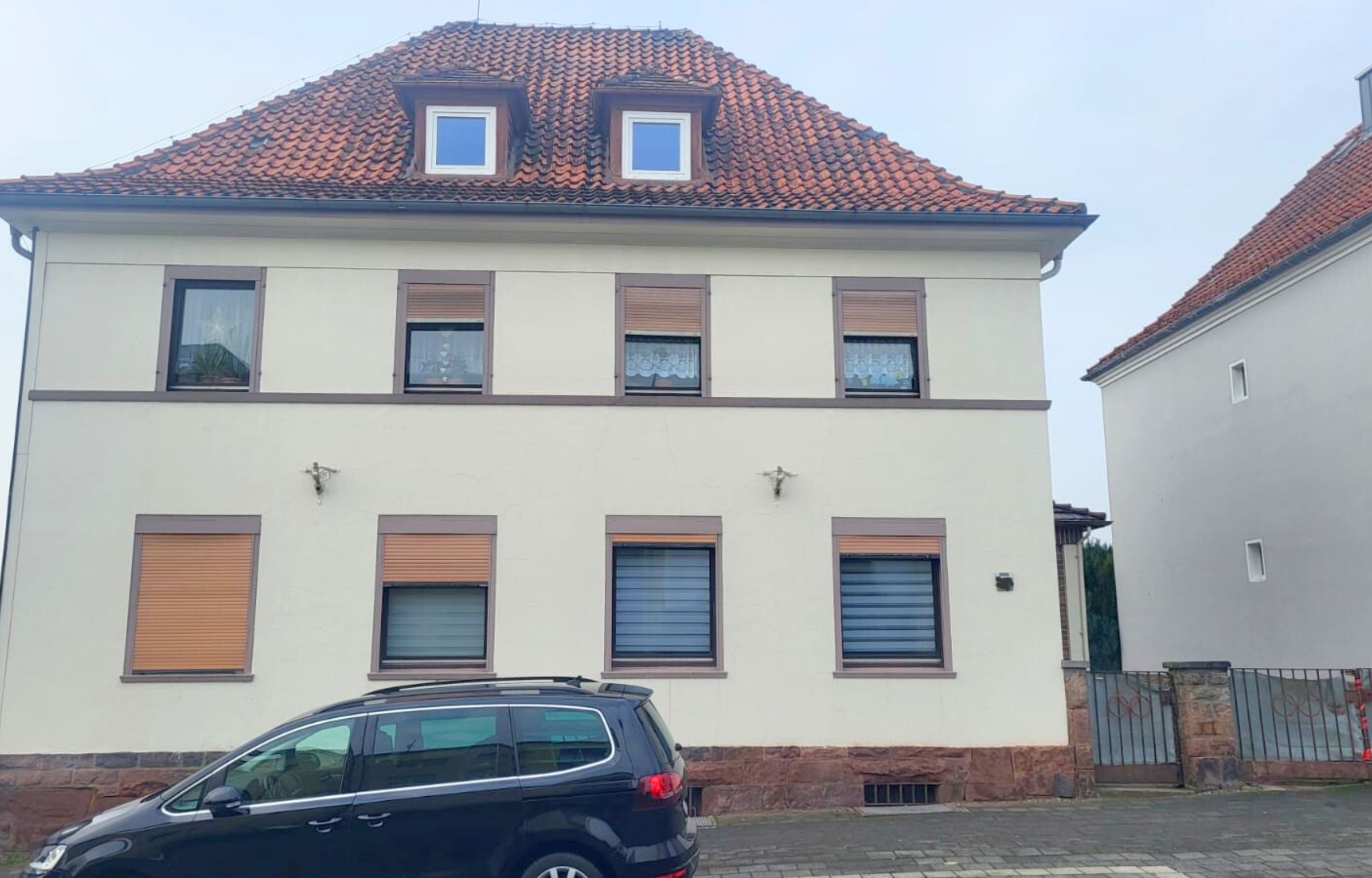 Zur Immobilie gehören ein separates Garagengebäude, Stellplätze im Hof, ein praktischer Anbau mit zusätzlicher Nutzfläche sowie ein voll unterkellerter Bereich mit gemeinsamer Waschküche. Beheizt wird das Objekt über eine Ölheizung, die Fenster sind aus Holz mit Doppelverglasung.