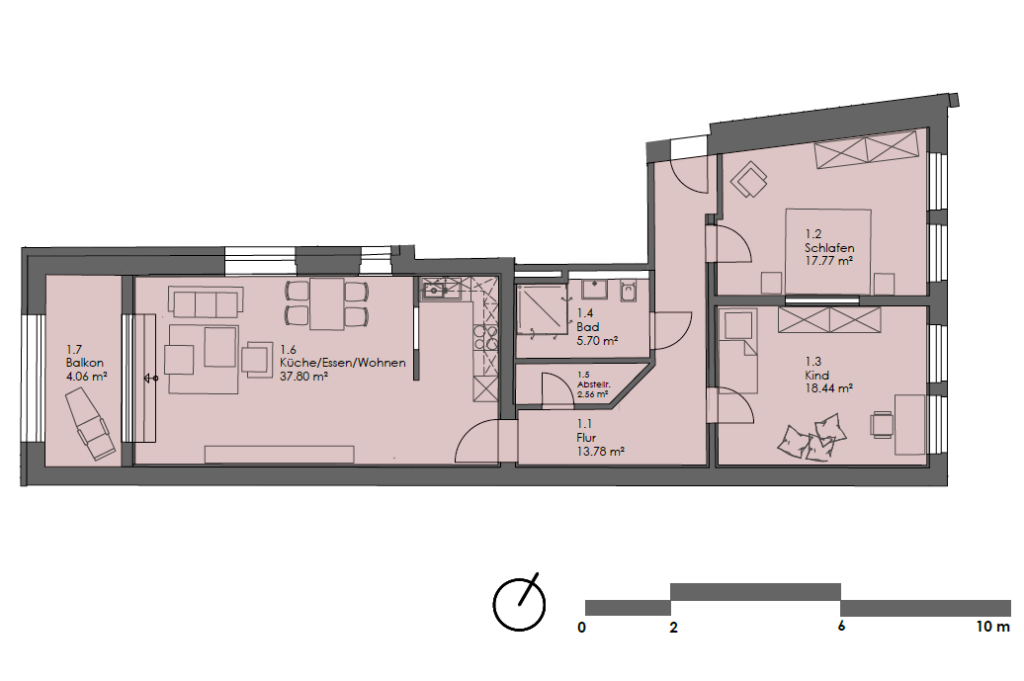 Achtung: Das Bildmaterial zeigt eine beispielhafte Einrichtung und dient ausschließlich zur Veranschaulichung. Bitte beachten Sie zusätzlich, dass es im Zuge der weiteren Planung noch zu baulichen Änderungen kommen wird.
